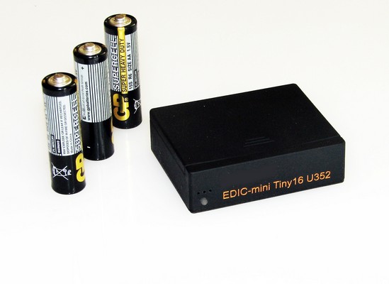 Edic-mini Tiny 16 U352 provides audio recording up to 2400 hours, whereas the device is powered by 3 AA batteries or rechargeable batteries that carry out continuous operation for the whole 17 days.