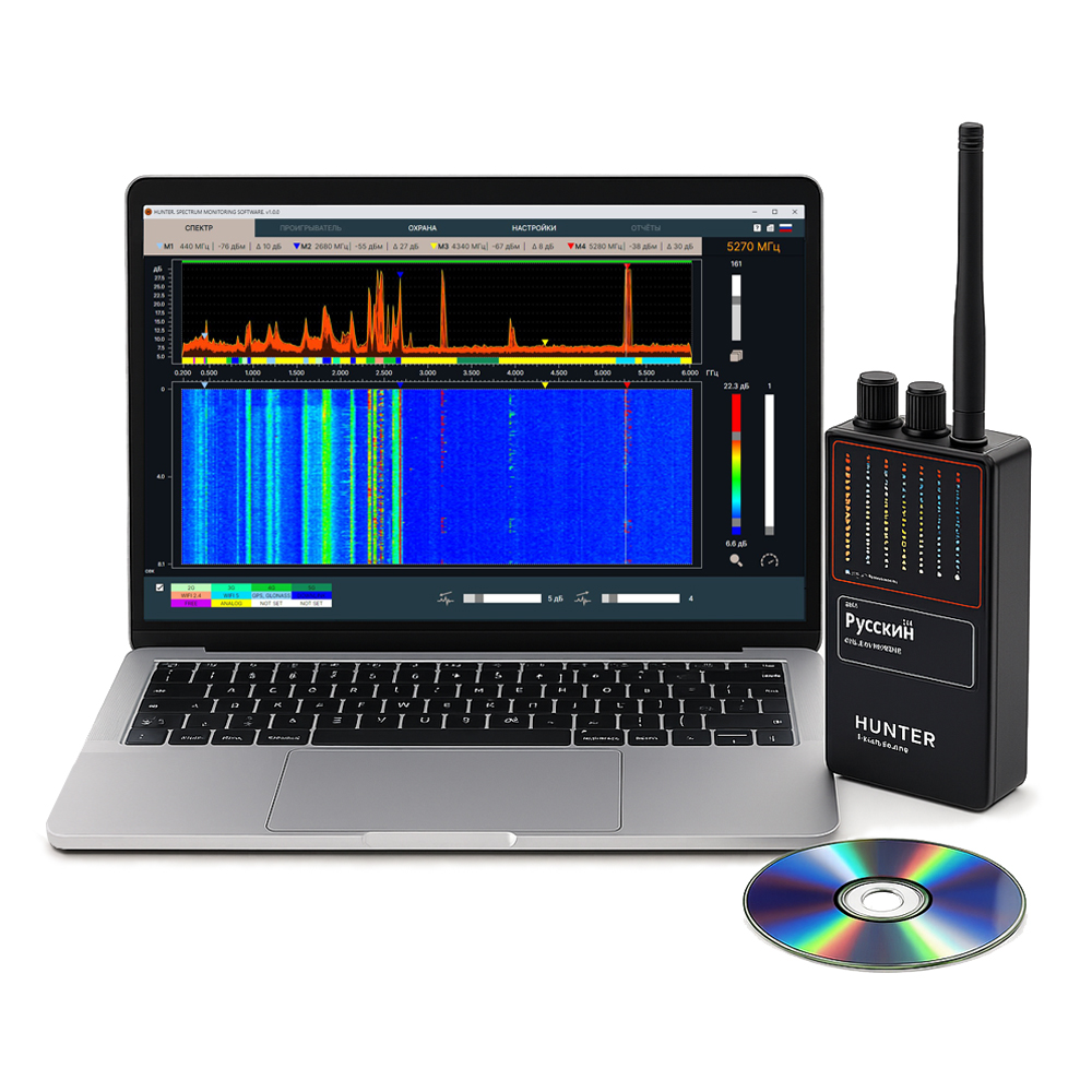 The Selective Detector Hunter PRO «Full» is a professional tool for searching and locating listening devices, hidden wireless video cameras, cell phones and GSM devices. Starting from version 4, the technical characteristics of the device have been significantly improved: the frequency range of 200-6000 MHz has been expanded, sensitivity parameters of -85 dBm (12mkV) have been improved, and an input attenuator of 0-31 dB has been added in 1 dB increments. The device works with the full version of Spectrum Monitoring Software, which opens up all possibilities for deep analysis of radio signals, including "Spectrum+" and "Waterfall" modes, which ensures maximum depth and accuracy of checks to identify and analyze hidden threats. The high scanning speed of 500 GHz/sec ensures the registration of even short signals.